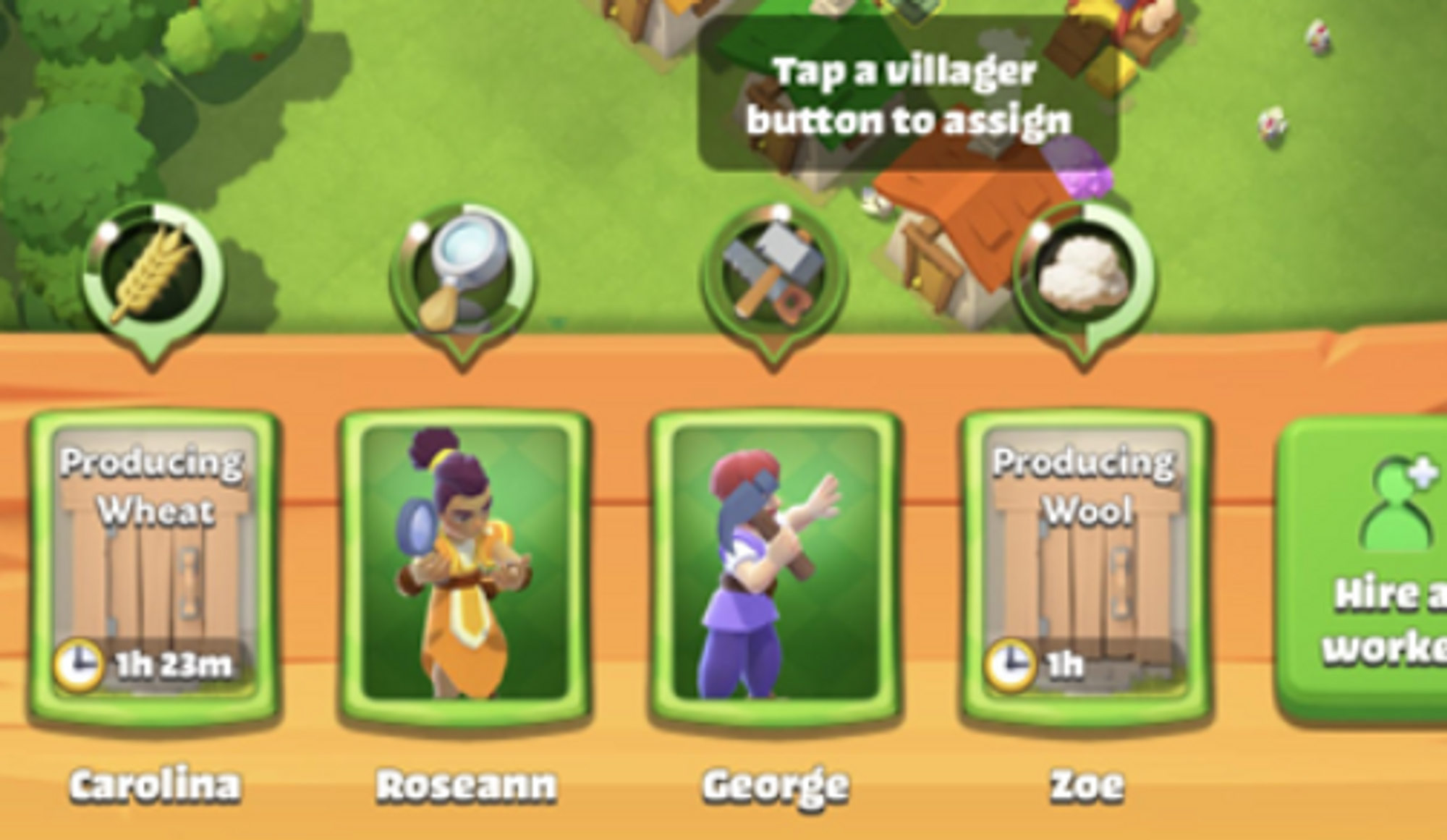 This generates a layer of micromanagement and offers an incentive to manage how the village is laid out. Smart task assignments can improve the efficiency of the production pipeline by avoiding bottlenecks. And players can arrange their buildings’ positions to make resource transportation faster.